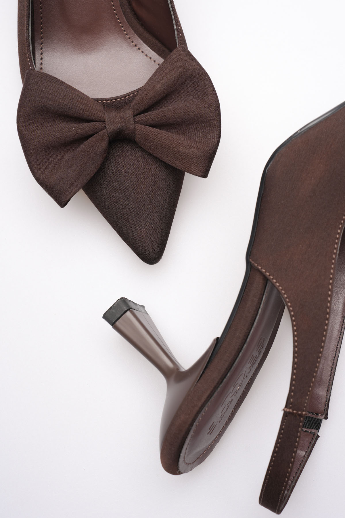 Acı Kahve Fiyonklu Kitten Topuklu Slingback Kadın Ayakkabı TR08MS24C