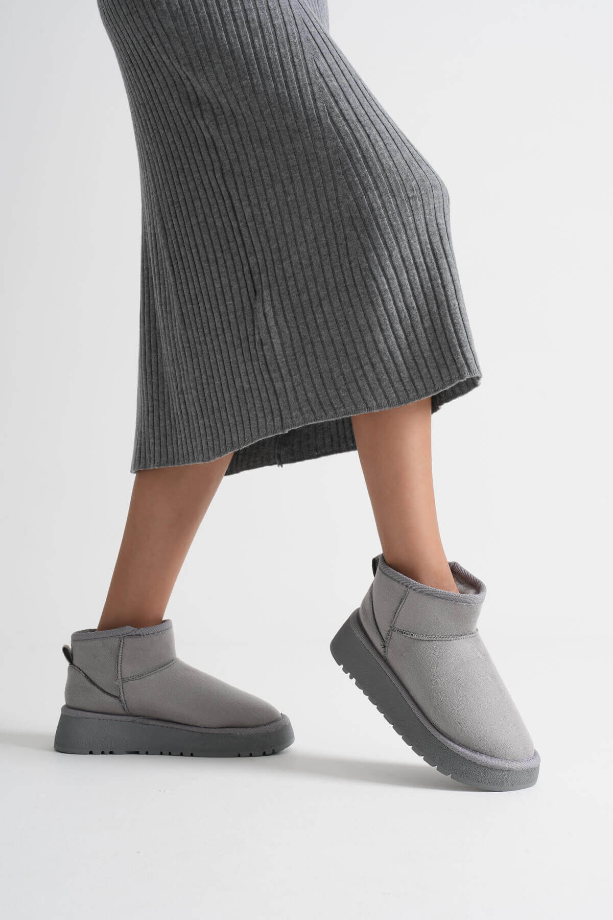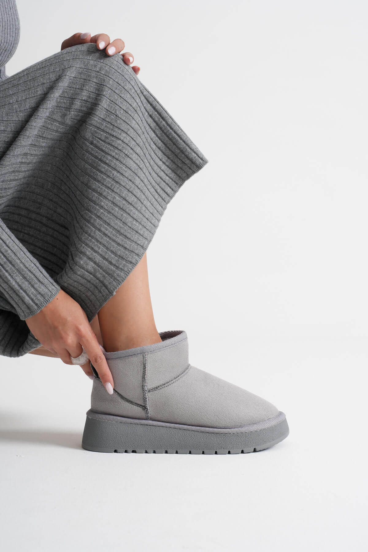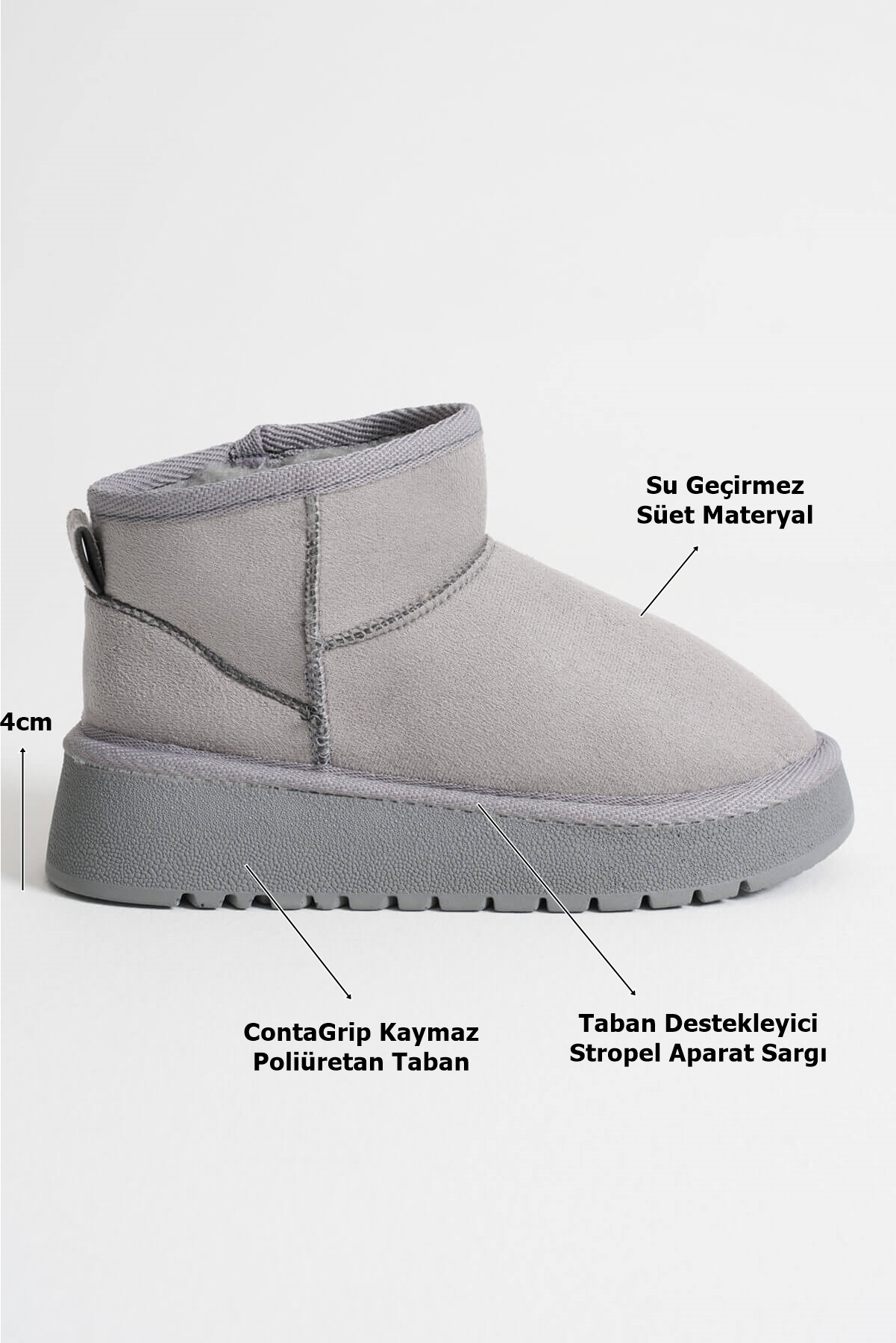 Alina Kadın Gri Kışlık Kürklü Bot