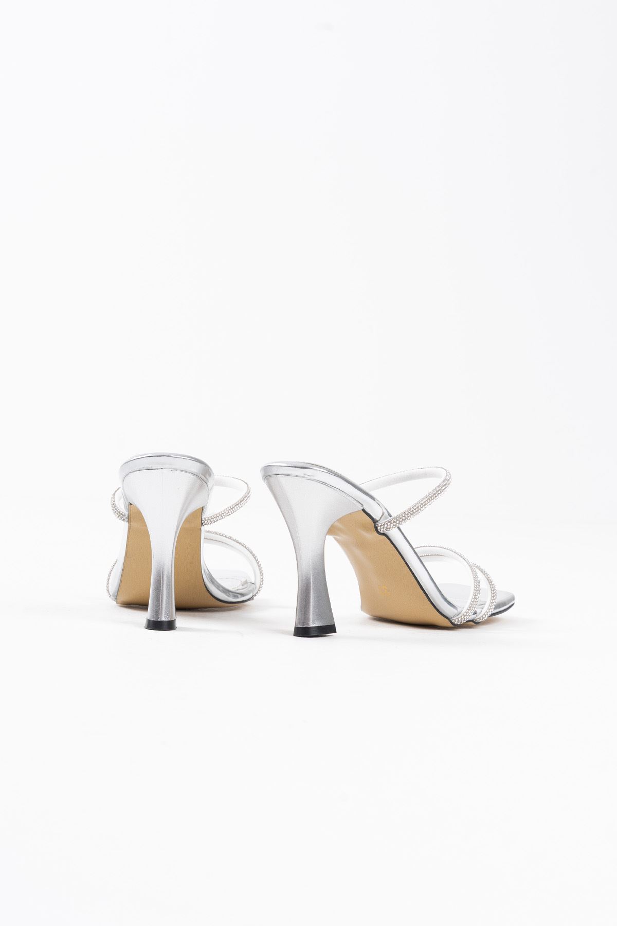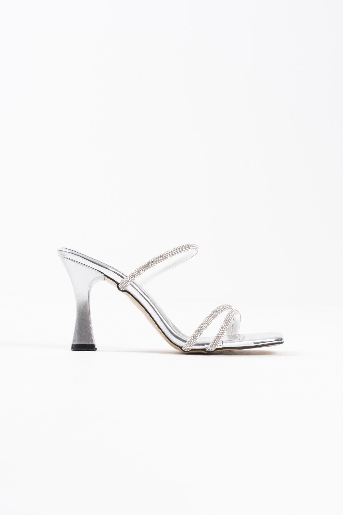 ALVINA – ışığın ta kendisi. Gümüş aynalı yüzey, taşlarla birleştiğinde yalnızca bir ayakkabı değil, sahneye giriş bileti olur. Her adımında dikkatleri üzerine çekeceğin, ışıltının kontrolün