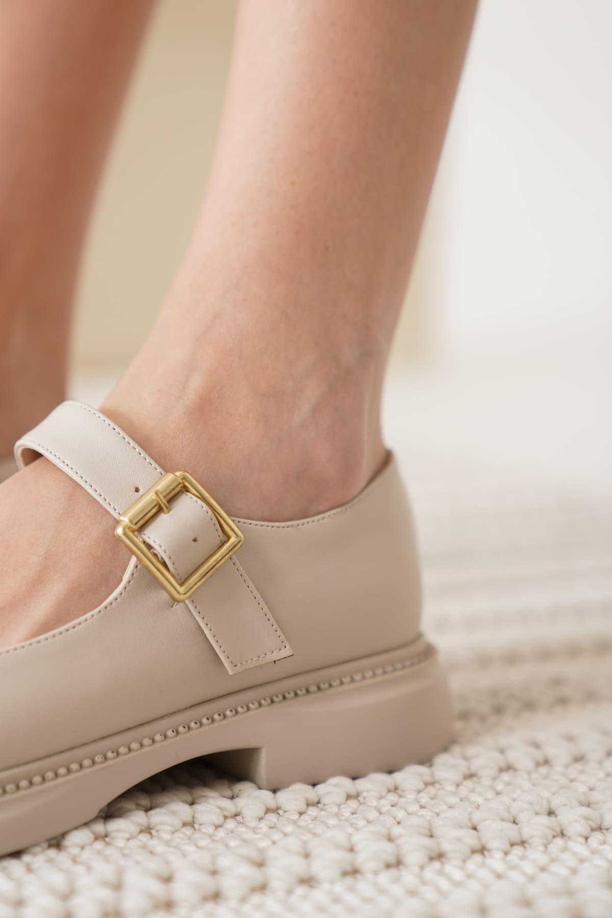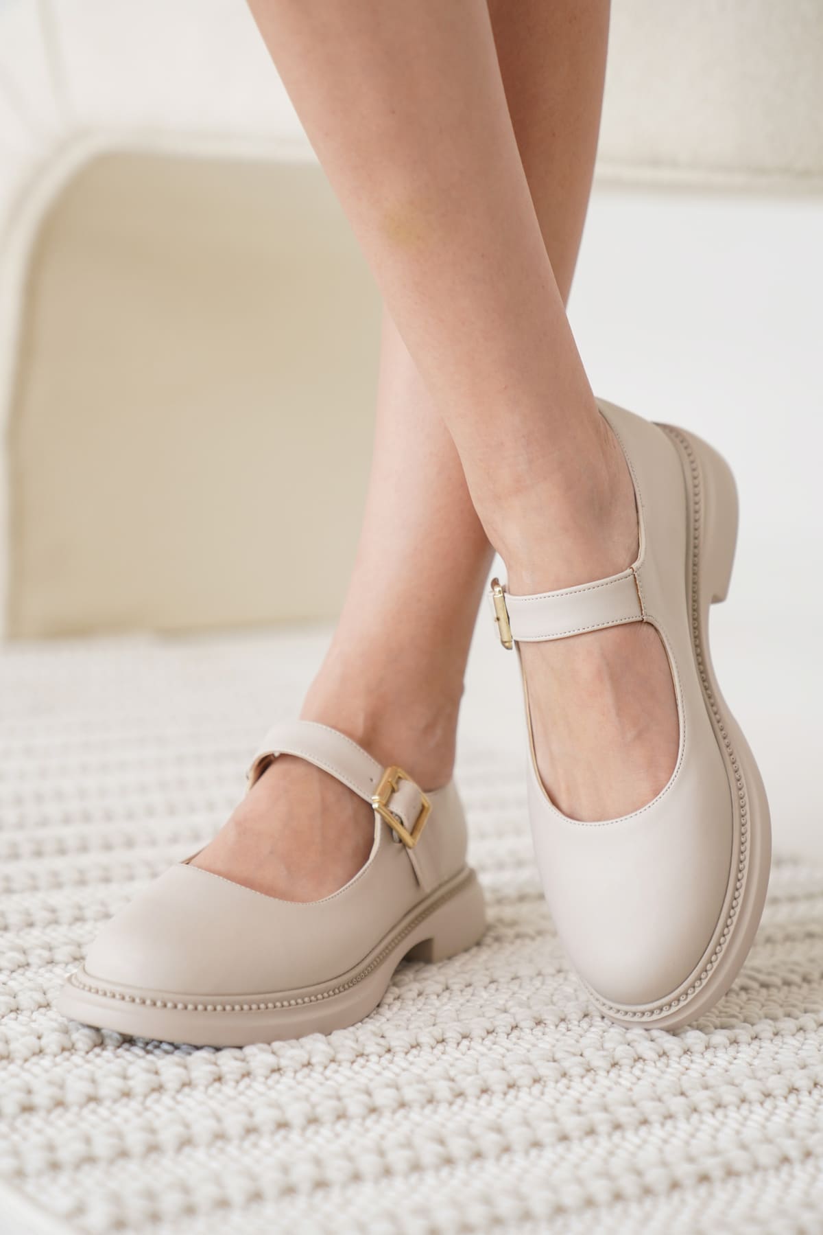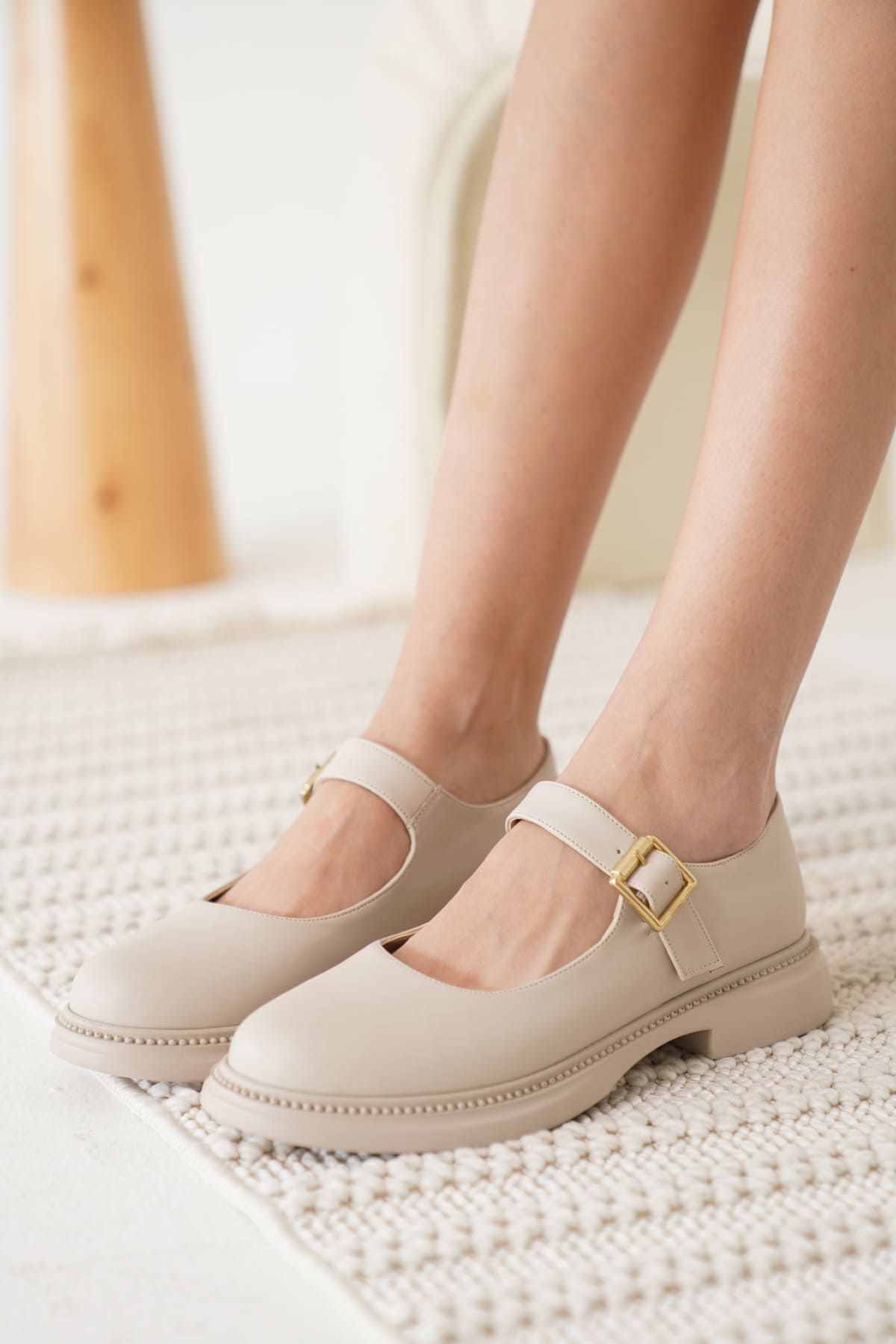 BRIANA modeli, zarif ve modern tasarımıyla günlük şıklığına retro bir dokunuş katıyor. Mat cilt yüzeyi ve bileği kavrayan bant detayı, hem estetik hem de konforlu bir kullanım sunar. Altın renkli tokasıyla sofistike bir ışıltı yakalarken, yuvarlak burun formu gün boyu rahatlık sağlar.
