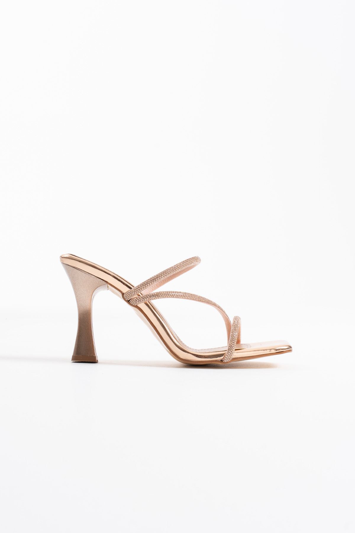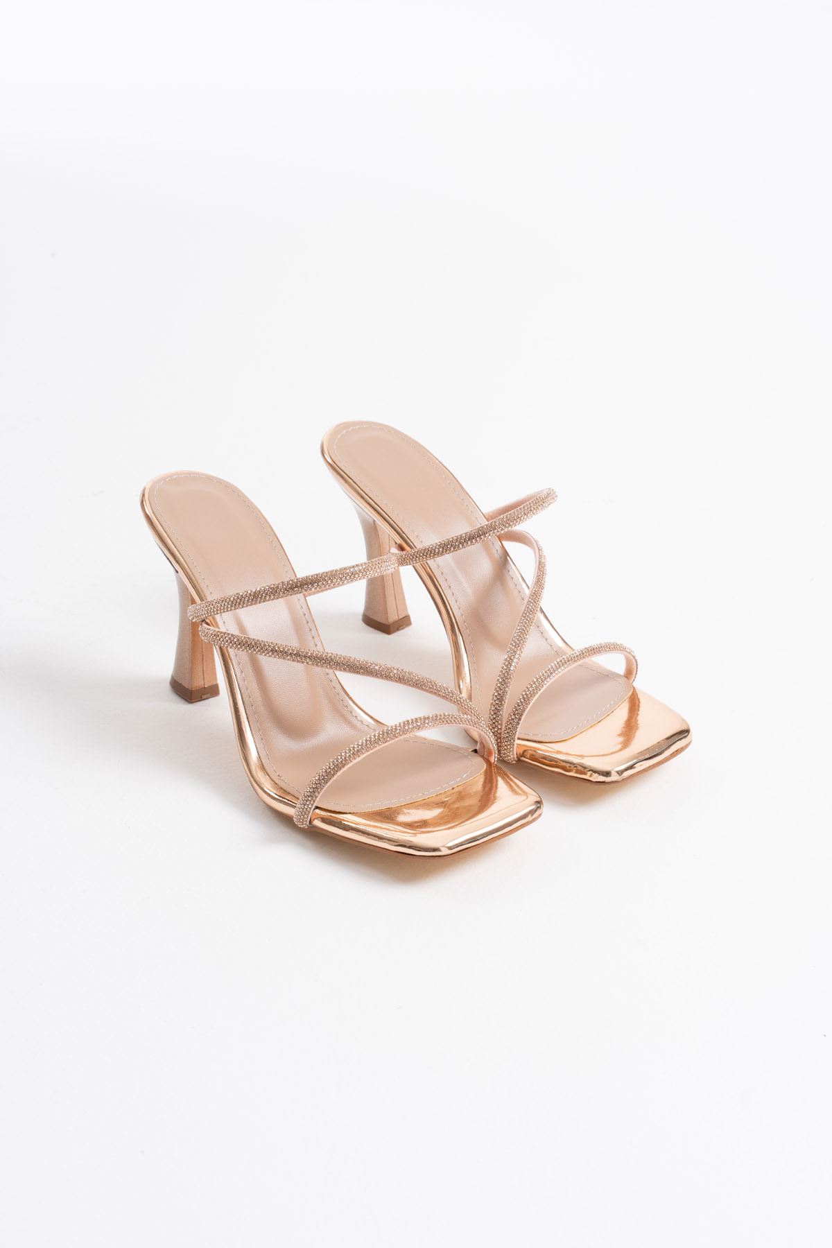 Alvina Nude Taşlı İnce Bantlı Kadın Topuklu Terlik