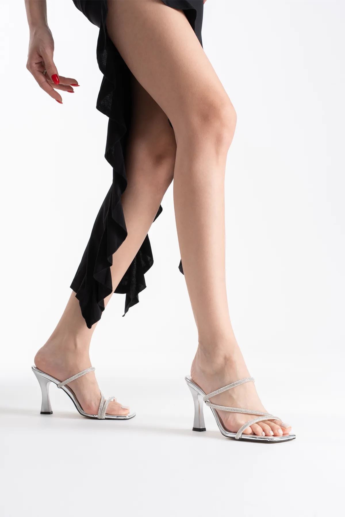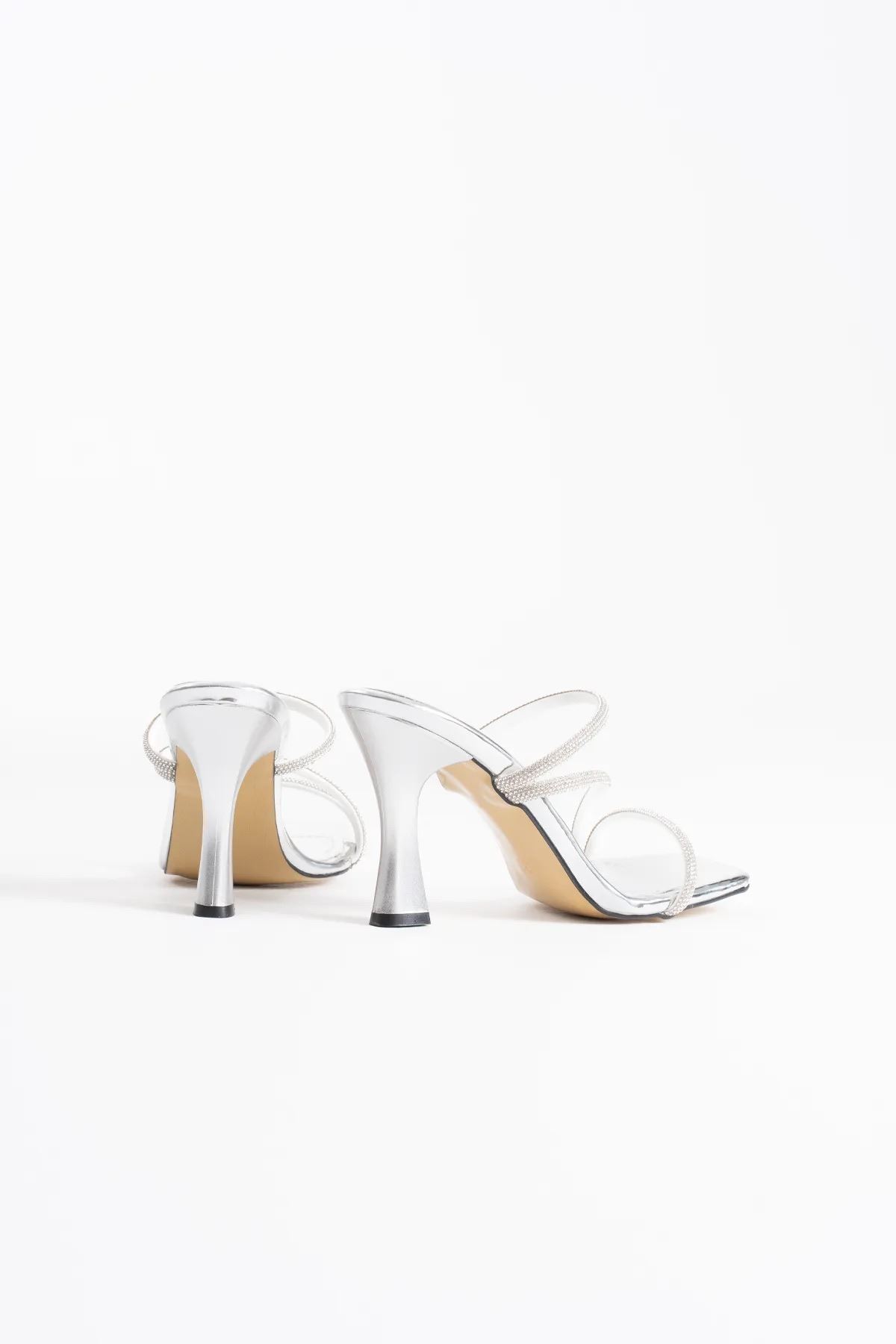 Alvina Gümüş Ayna Taşlı Kadın Topuklu Terlik