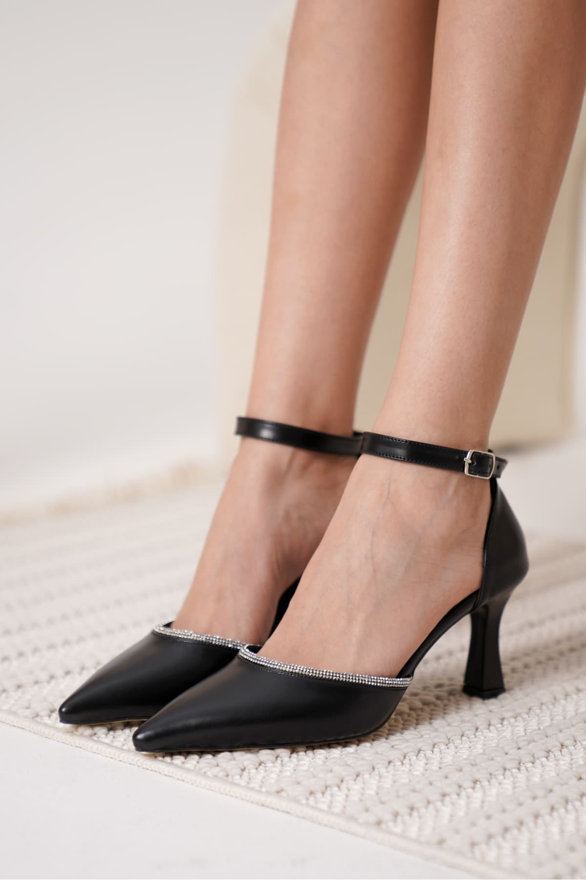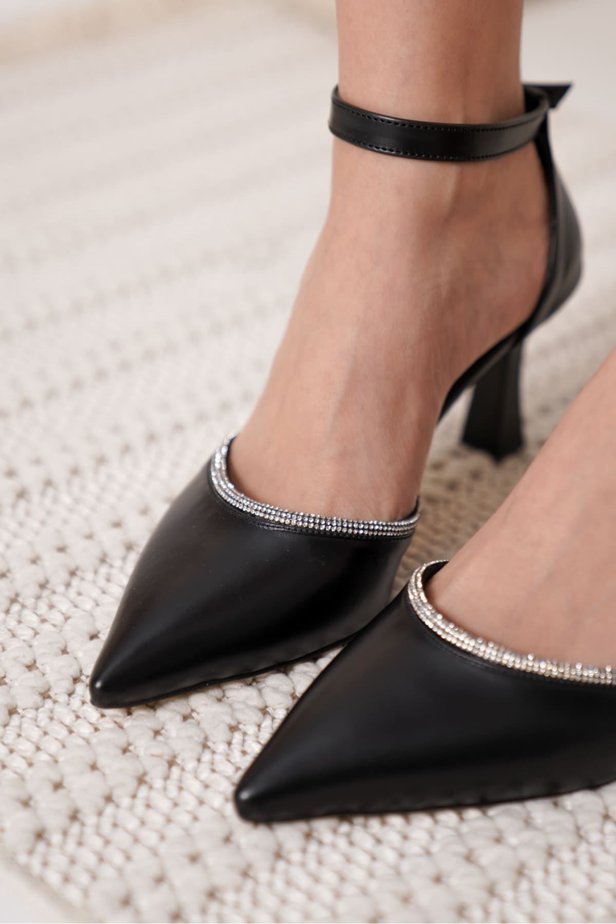 Darla Taşlı Kadın Siyah Topuklu Ayakkabı