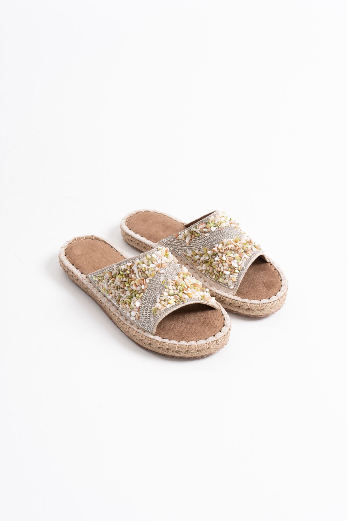 Dennis Kadın Bej Taş İşlemeli Terlik