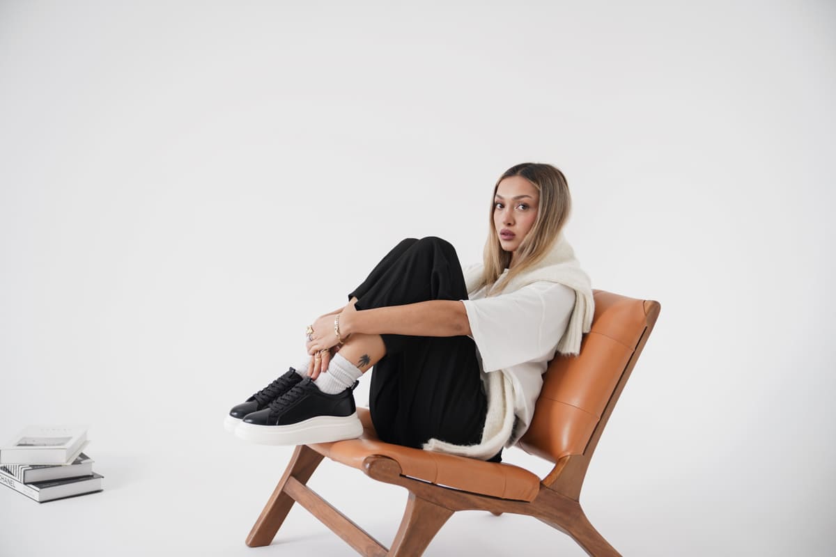Bazı renkler dikkat çeker, bazıları ise etkileyici bir iz bırakır. DINA, klasik siyah sneaker algısını yıkıyor ve metalik dokusuyla farkını ortaya koyuyor. Ne