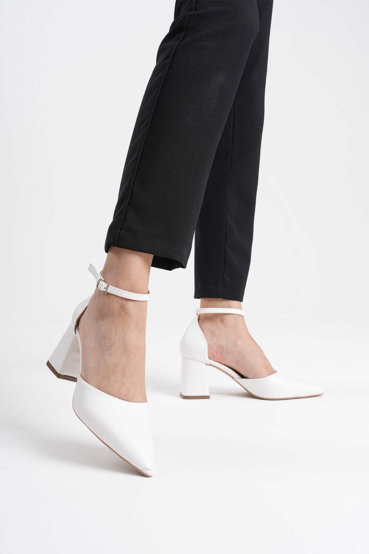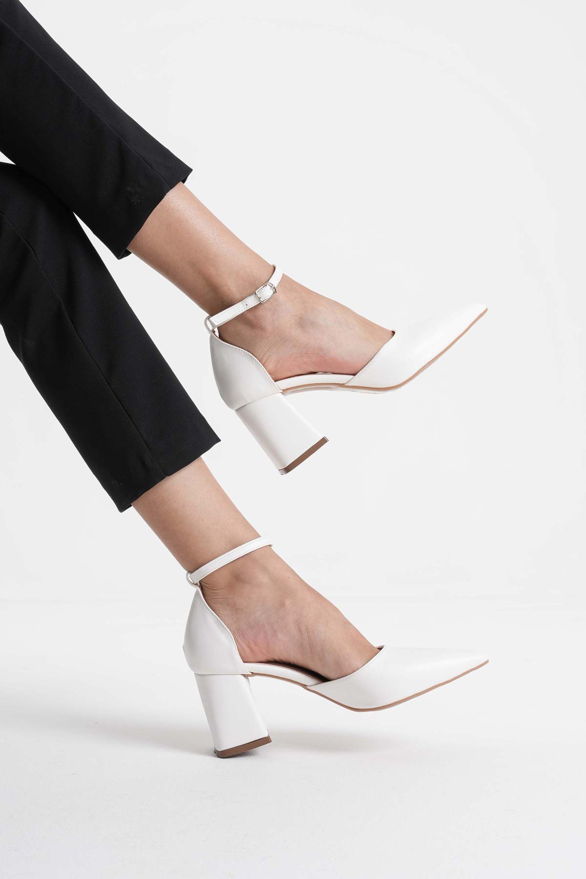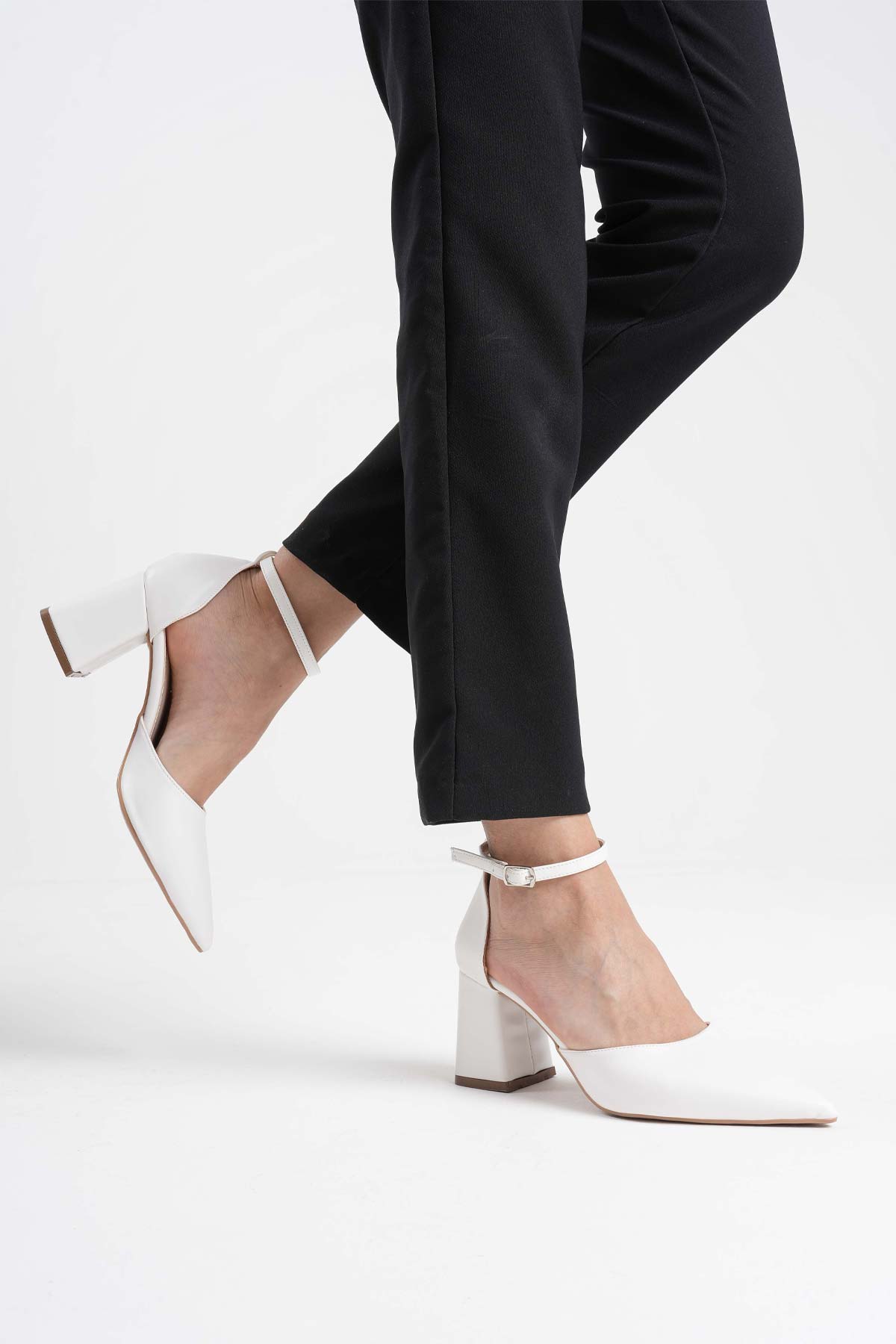 Doren Beyaz Cilt Kadın Topuklu Ayakkabı