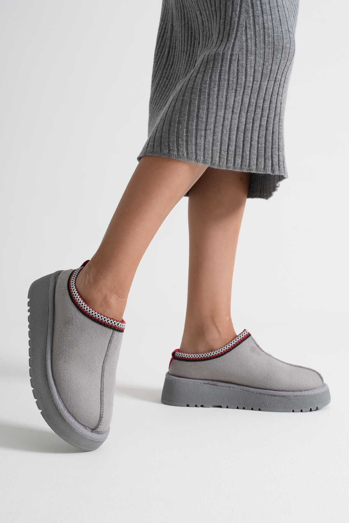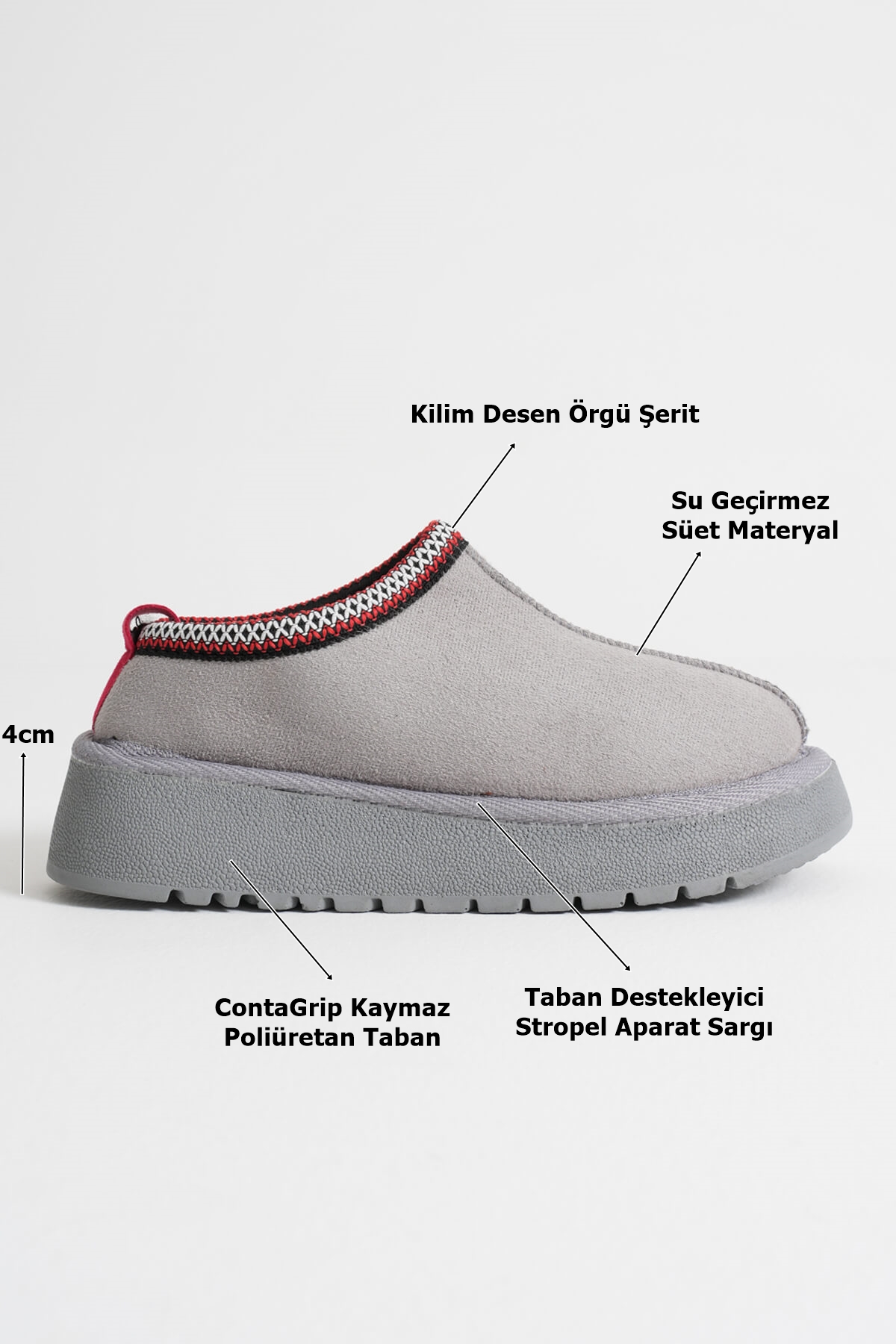 Elsa Kadın Gri Kışlık Kürklü Terlik