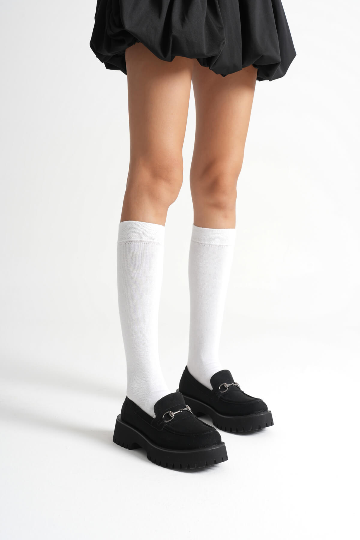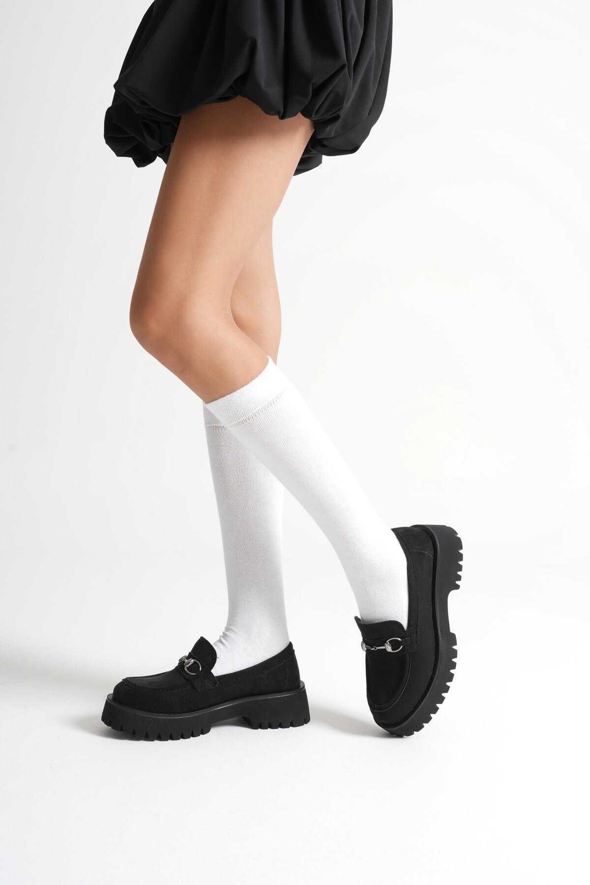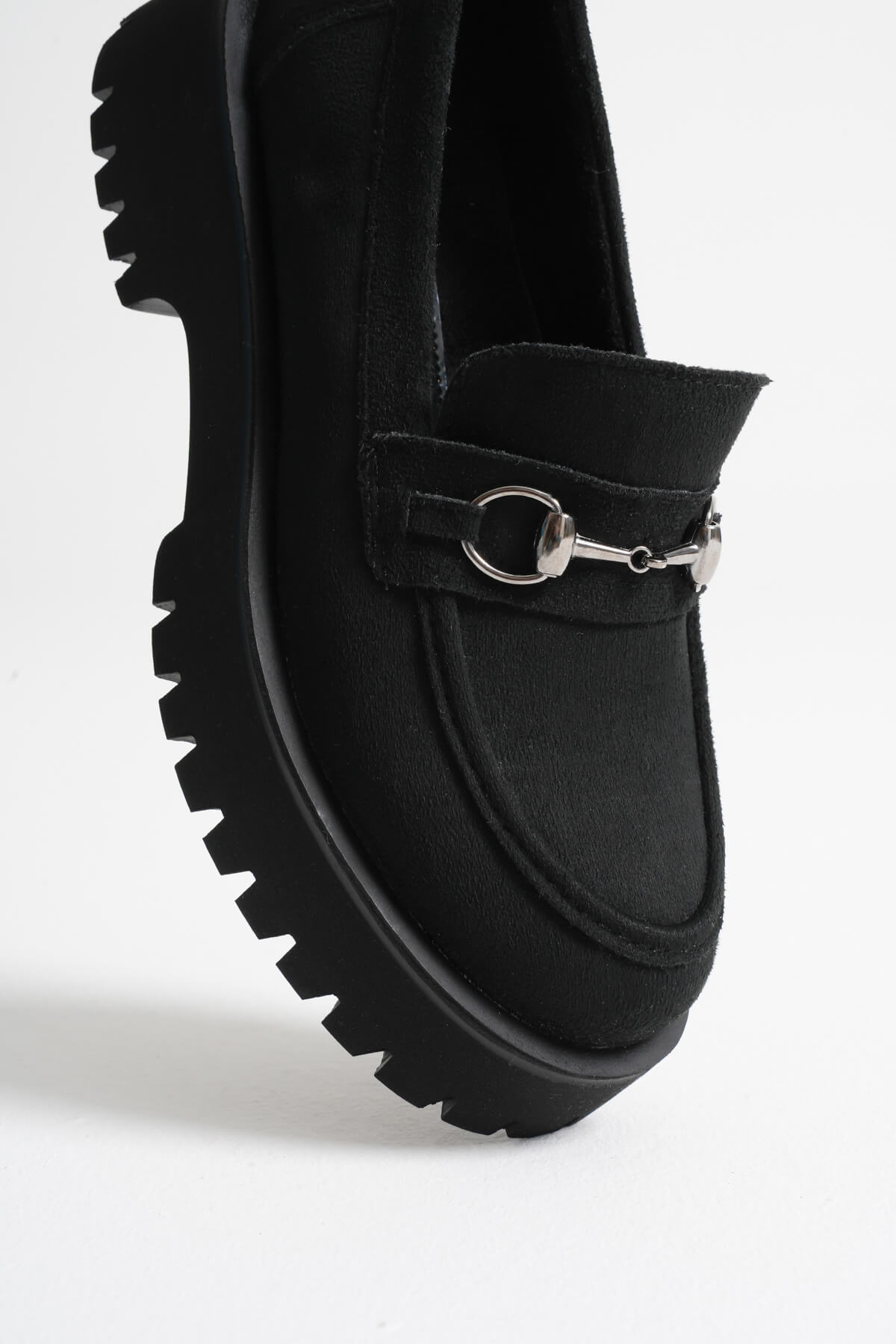 Klasik loafer çizgisini modern dokunuşlarla yeniden yorumlayan LARA, metal tokası ve kalın dişli tabanıyla güçlü bir stil sunuyor. Siyah süet yüzeyi sofistike bir hava katarken, sağlam yapısı ve rahat kalıbı gün boyu konfor sağlıyor. Şehirli kadının enerjis