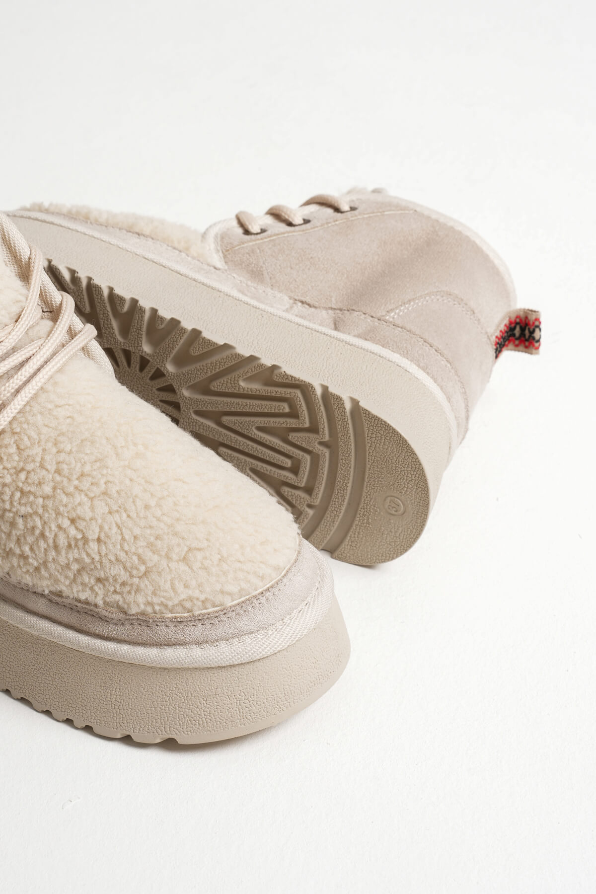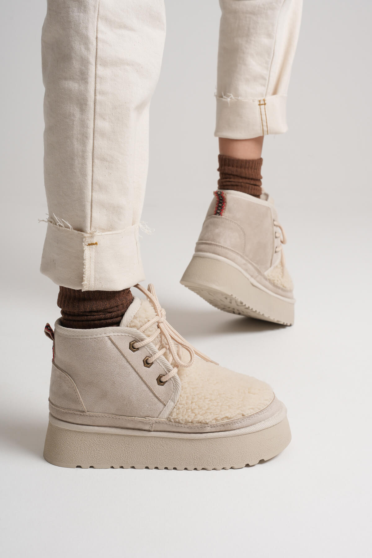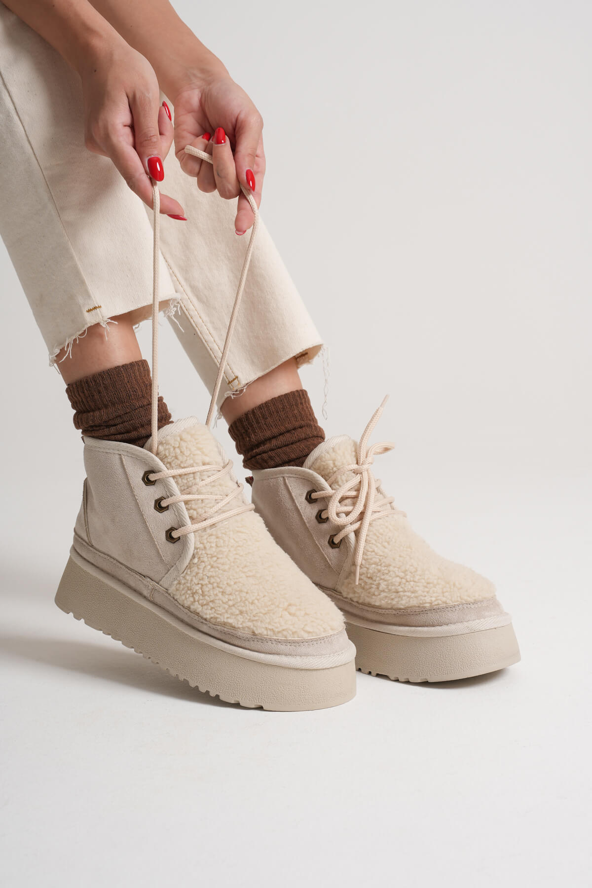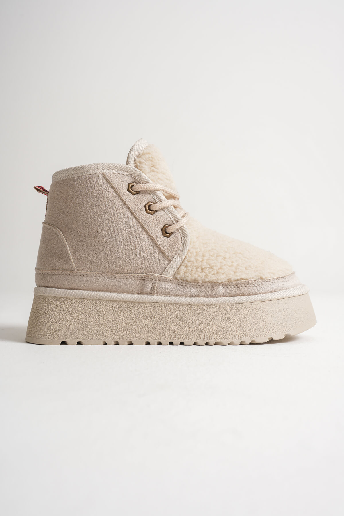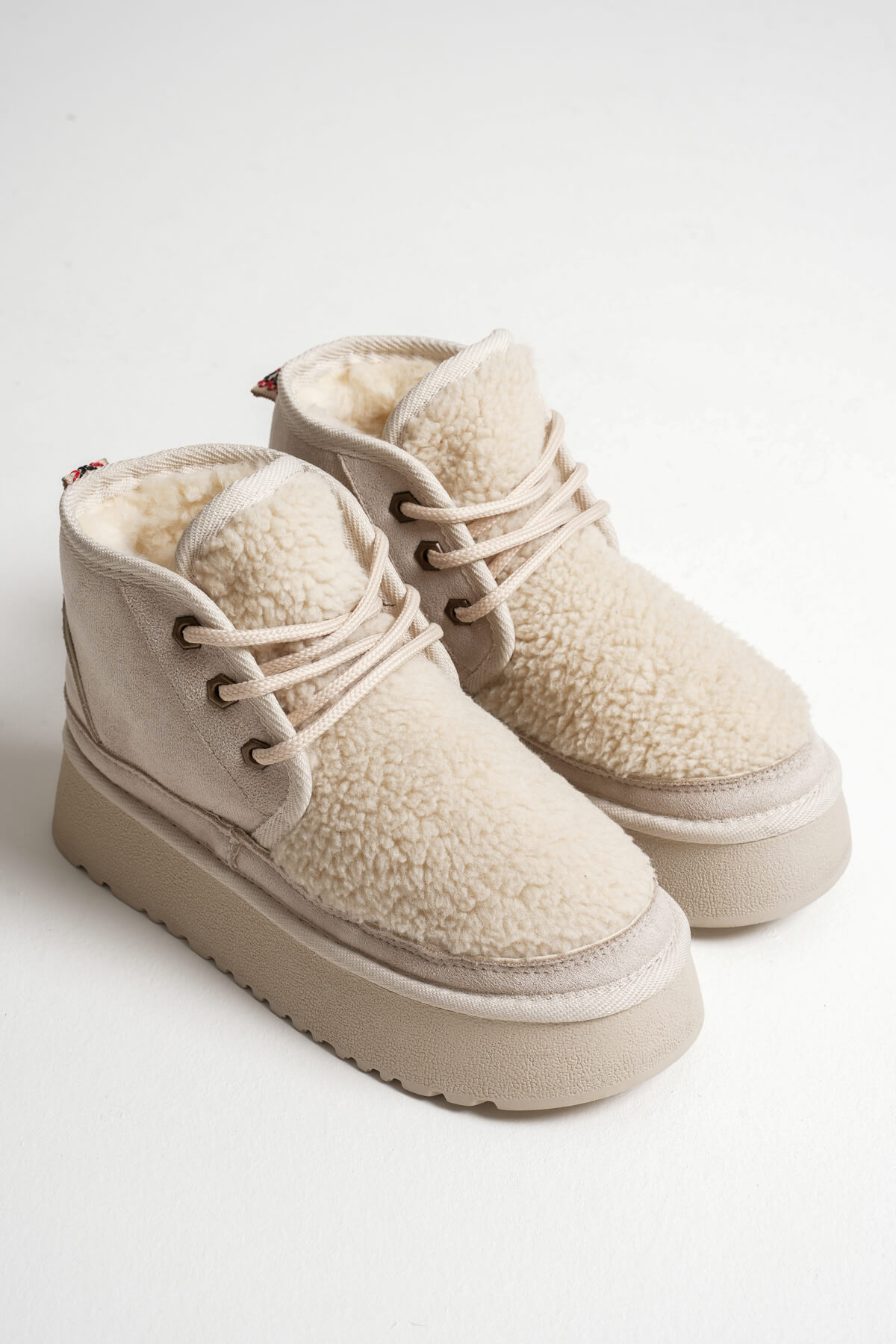 Loana Kadın Kürklü Bej Kışlık Kalın Tabanlı Bot
