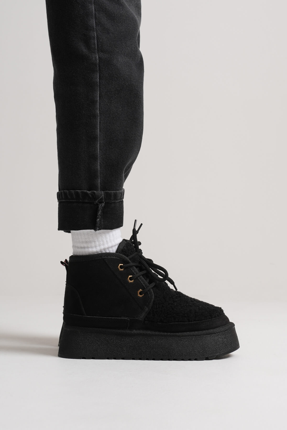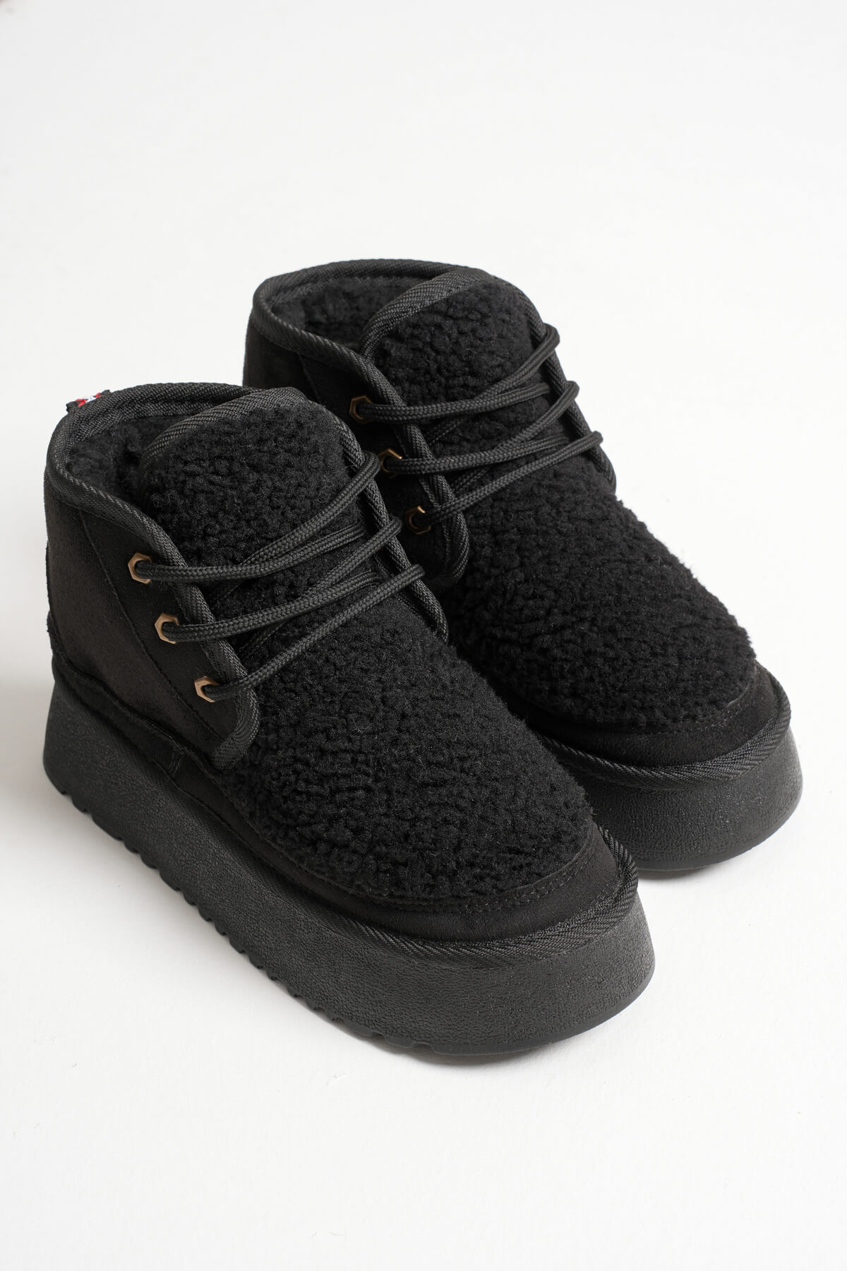 Loana Siyah Kürklü Kadın Kışlık Kalın Tabanlı Bot