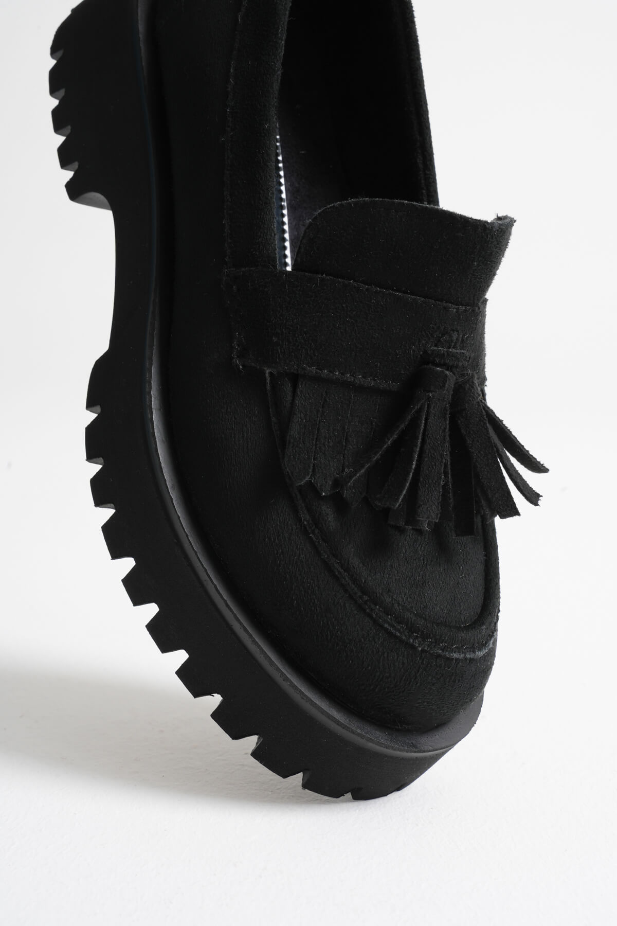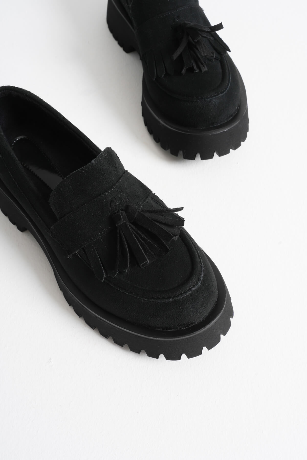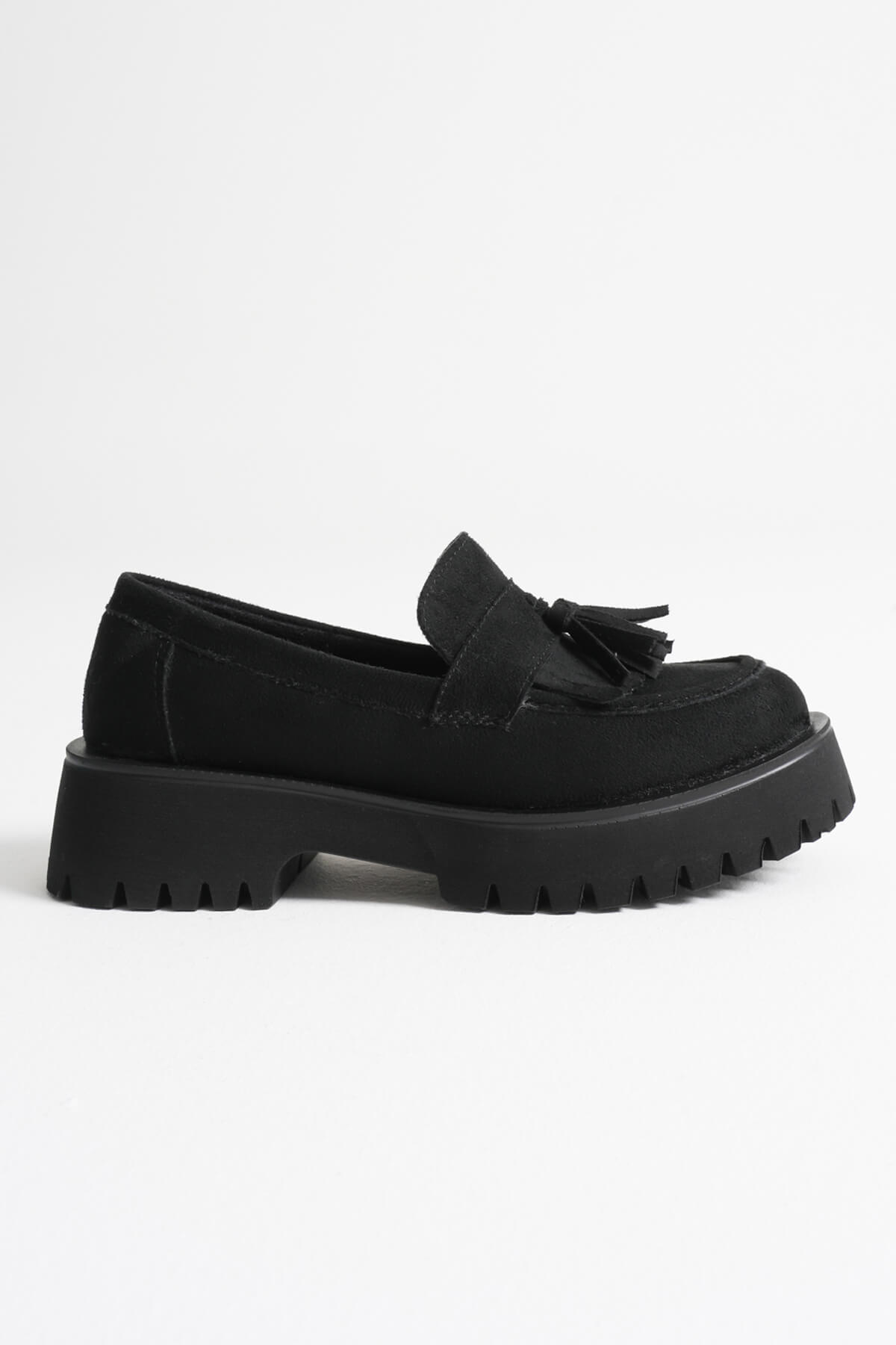 Klasik loafer tasarımına zarif püskül detayıyla farklı bir hava katan MİNA, feminen dokunuşu ve modern kalın tabanıyla güçlü bir görünüm sunuyor. Siyah süet yüzeyi sofistike bir şıklık katarken, rahat kalıbı gün boyu konfor sağlıyor. Hem