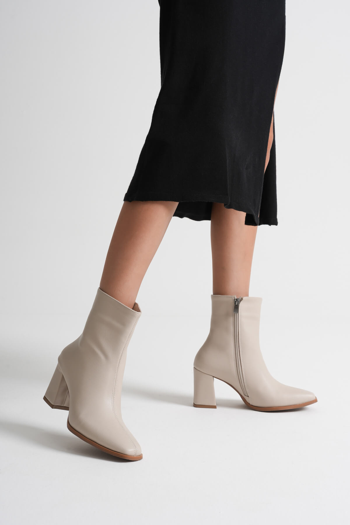 Lucinda Kadın Kışlık Bej Kalın Topuklu Bot